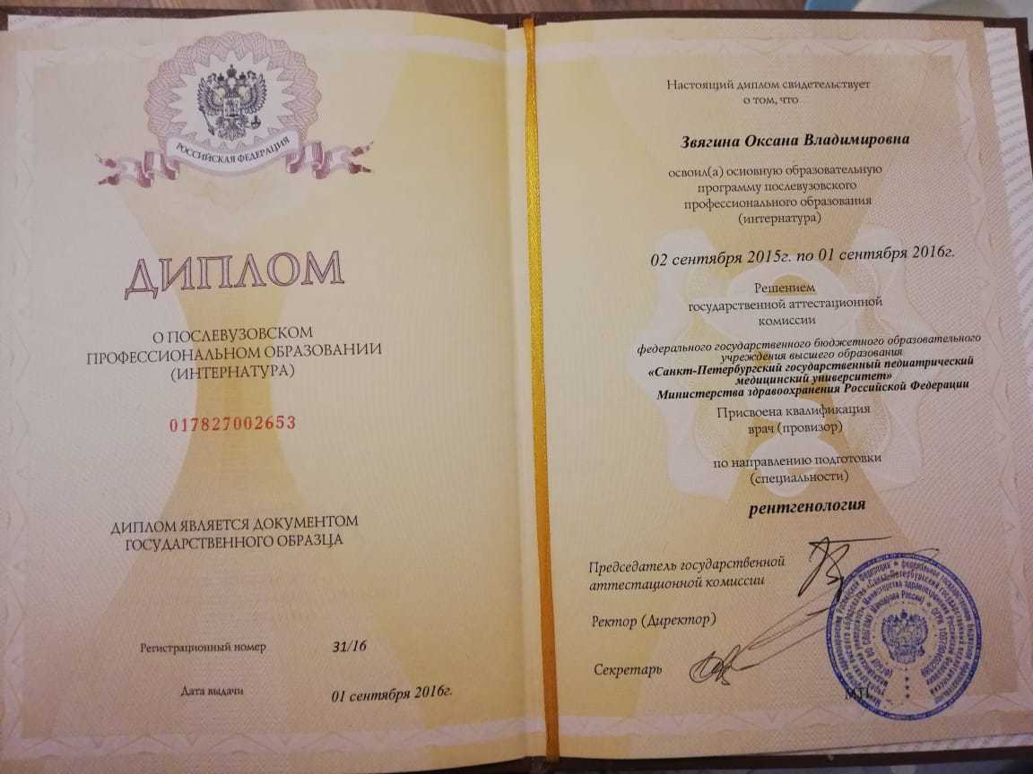 Интернатура СПБГМУ им. академика И.П. Павлова, по специальности «Неврология»